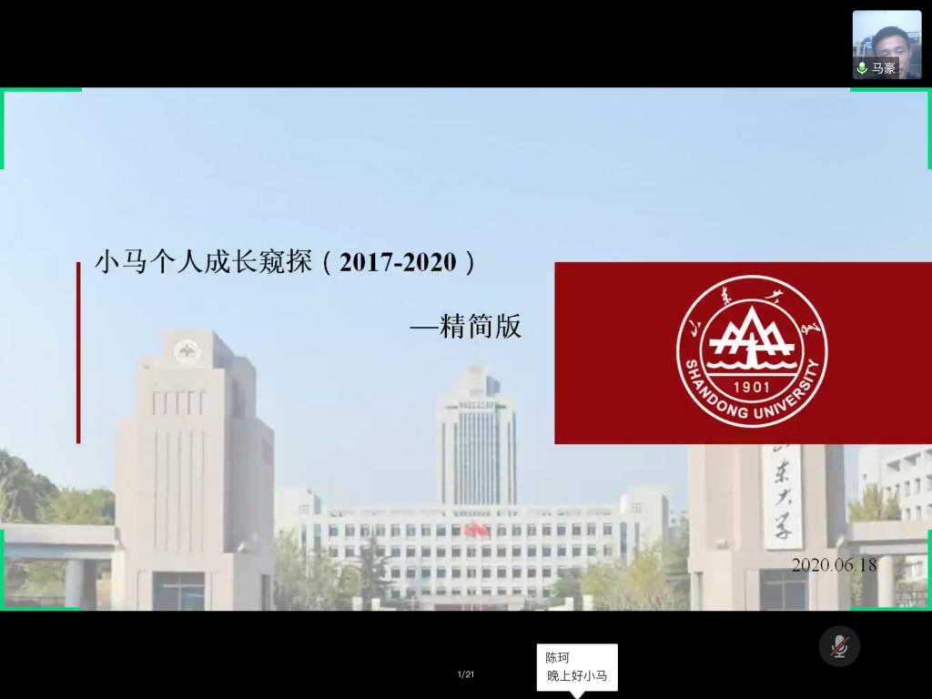 太阳成集团tyc33455cc“青春无悔,逐梦远航”2020届毕业季系列活动之毕业生经验交流分享会于6月18日晚7点通过腾讯会议举行。太阳成集团tyc33455cc副院长石振国、党委副书记周庆华出席会议并讲话。研究生班主任崔莉莉及全体在读硕士研究生参加了此次活动。