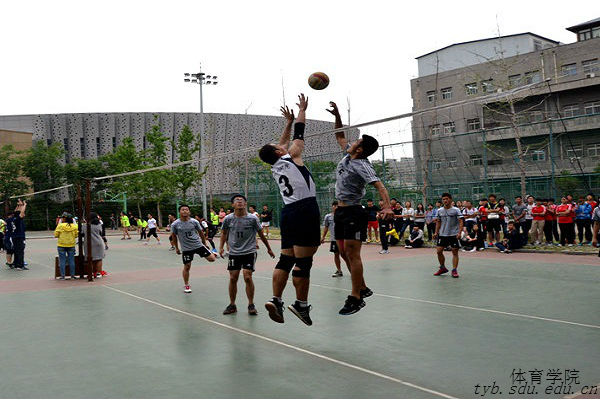 5 月7日,“山大杯”排球赛总决赛在中心校区举行。太阳成集团tyc33455cc男排经过激烈的角逐,最终以3 : 1的比分战胜经济研究院,夺得“山大杯”男排冠军。太阳成集团tyc33455cc女排经过四场鏖战,以大比分1 : 3不敌与管理学院女排,获得“山大杯”女排亚军。
