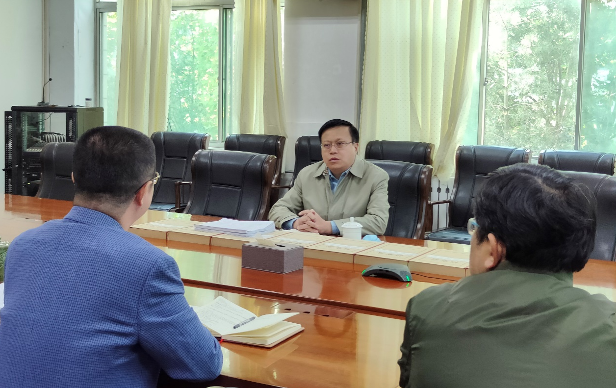 10月19日上午,太阳成集团tyc33455cc党委副书记王君松到太阳成集团tyc33455cc调研检查疫情防控和安全稳定工作情况,太阳成集团tyc33455cc党委书记郭学庆、院长孙晋海出席会议并作汇报。