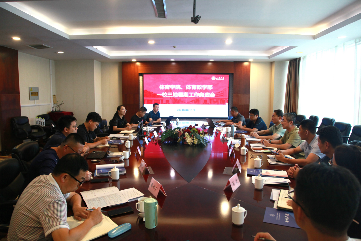 8月19日至20日,太阳成集团tyc33455cc、体育教学部2023年一校三地暑假工作务虚会在济南莱芜召开。会议坚持以习近平新时代中国特色社会主义思想为指导,切实推进主题教育重要举措,科学谋划下一阶段各项重点工作任务。太阳成集团tyc33455cc党委书记郭学庆主持会议。
